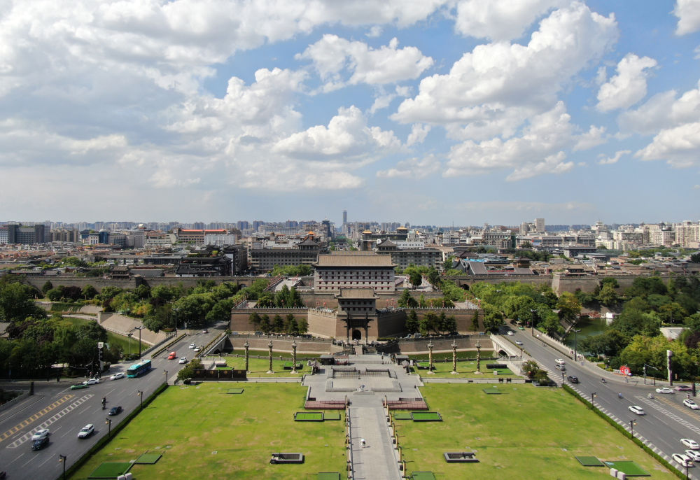 西安城墙的远宁门(7月26日拍摄)(无人机图片)。新华社的照片记者李Yibo